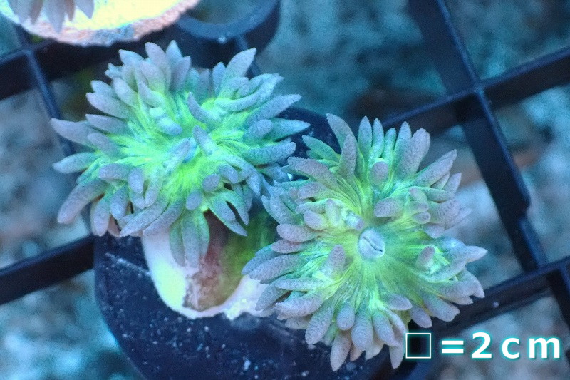 【サンゴまとめ買い割引き10%〜20%OFF対象商品】 【サンゴ】【通販】【オーストラリア産】フラグウィスカーズコーラル(グリーン/2 heads)(個体販売)No.9(生体)(サンゴ)