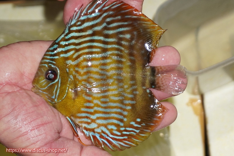 イエローベースが美しいソリッド、ソリッドセンターバー、ロイヤルブルーが混生するウラリアチャンネルに絡む有名産地。 きめ細かな鱗からの上品な発色、ロイヤル個体の明瞭なラインパターン、千差万別の個体差はワイルドディスカスの魅力を存分に持ち合わせた個体といえます。
