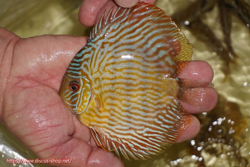 イエローベースが美しいソリッド、ソリッドセンターバー、ロイヤルブルーが混生するウラリアチャンネルに絡む有名産地。 きめ細かな鱗からの上品な発色、ロイヤル個体の明瞭なラインパターン、千差万別の個体差はワイルドディスカスの魅力を存分に持ち合わせた個体といえます。
