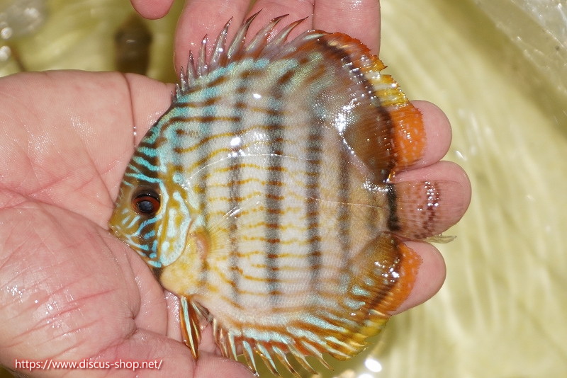 イエローベースが美しいソリッド、ソリッドセンターバー、ロイヤルブルーが混生するウラリアチャンネルに絡む有名産地。 きめ細かな鱗からの上品な発色、ロイヤル個体の明瞭なラインパターン、千差万別の個体差はワイルドディスカスの魅力を存分に持ち合わせた個体といえます。