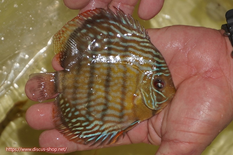 イエローベースが美しいソリッド、ソリッドセンターバー、ロイヤルブルーが混生するウラリアチャンネルに絡む有名産地。 きめ細かな鱗からの上品な発色、ロイヤル個体の明瞭なラインパターン、千差万別の個体差はワイルドディスカスの魅力を存分に持ち合わせた個体といえます。