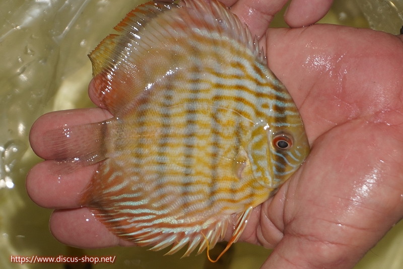 イエローベースが美しいソリッド、ソリッドセンターバー、ロイヤルブルーが混生するウラリアチャンネルに絡む有名産地。 きめ細かな鱗からの上品な発色、ロイヤル個体の明瞭なラインパターン、千差万別の個体差はワイルドディスカスの魅力を存分に持ち合わせた個体といえます。