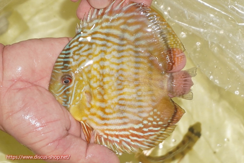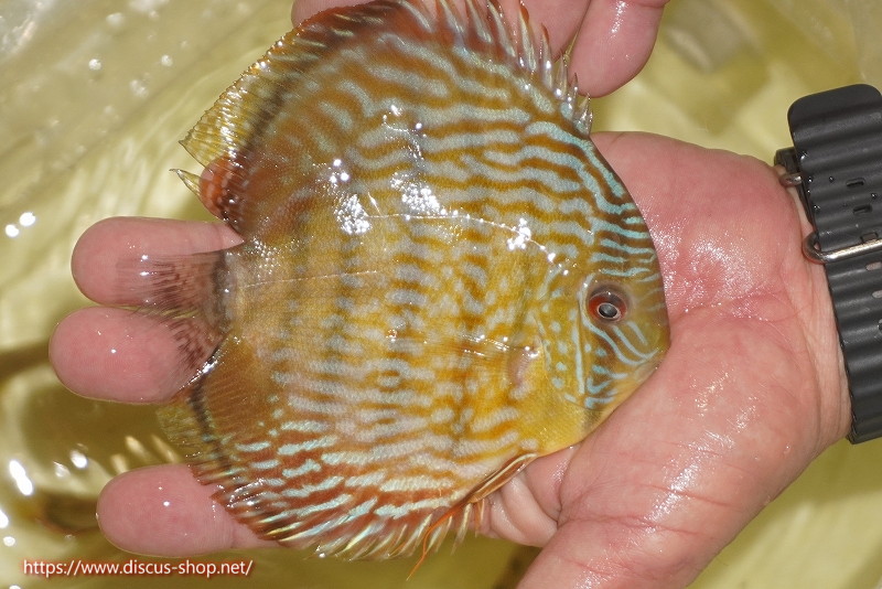イエローベースが美しいソリッド、ソリッドセンターバー、ロイヤルブルーが混生するウラリアチャンネルに絡む有名産地。 きめ細かな鱗からの上品な発色、ロイヤル個体の明瞭なラインパターン、千差万別の個体差はワイルドディスカスの魅力を存分に持ち合わせた個体といえます。