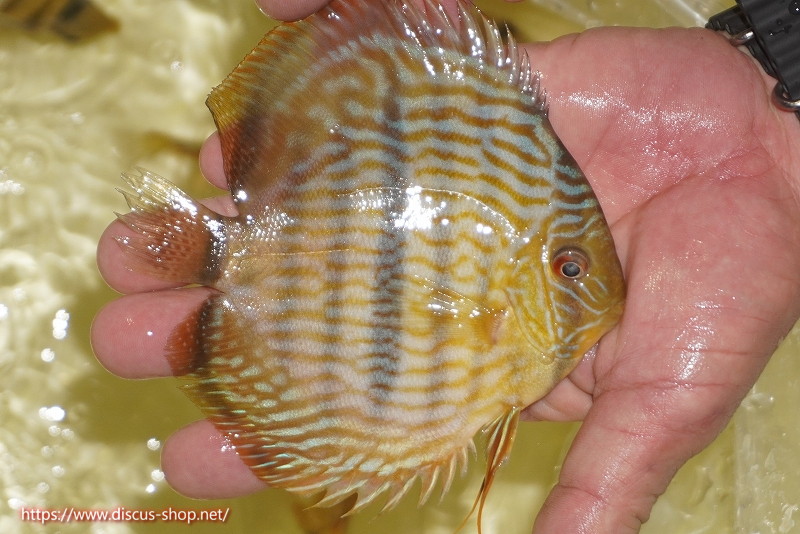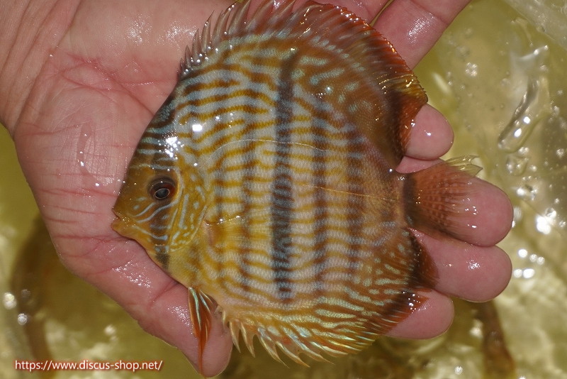 イエローベースが美しいソリッド、ソリッドセンターバー、ロイヤルブルーが混生するウラリアチャンネルに絡む有名産地。 きめ細かな鱗からの上品な発色、ロイヤル個体の明瞭なラインパターン、千差万別の個体差はワイルドディスカスの魅力を存分に持ち合わせた個体といえます。