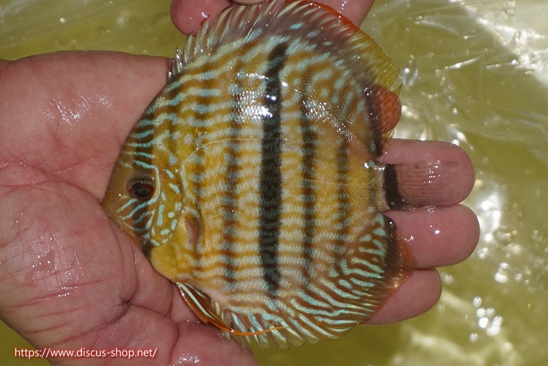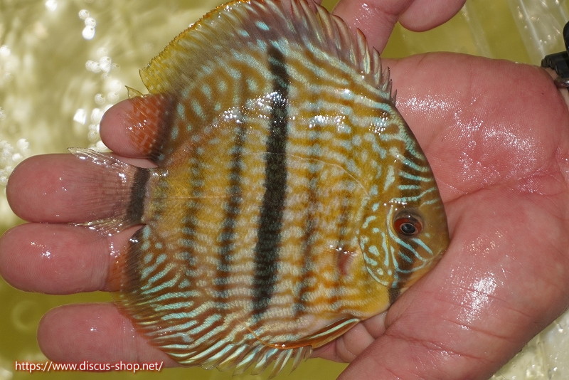 イエローベースが美しいソリッド、ソリッドセンターバー、ロイヤルブルーが混生するウラリアチャンネルに絡む有名産地。 きめ細かな鱗からの上品な発色、ロイヤル個体の明瞭なラインパターン、千差万別の個体差はワイルドディスカスの魅力を存分に持ち合わせた個体といえます。