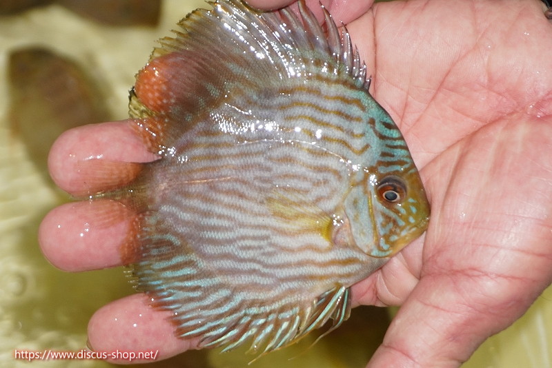 ネグロ産のヘッケルディスカス。ワイルドディスカスらしからぬ際立った青みを持ちベースカラーのえんじ色と相まって非常に美しい発色を見せます。名のごとくフェイス部分の青みは他の産地のヘッケルディスカスとは一味違った表現を持ちます。