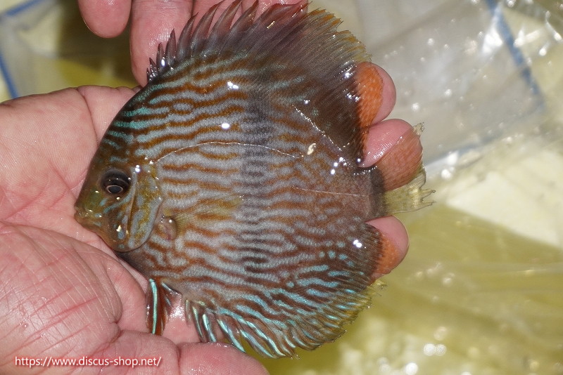 ネグロ産のヘッケルディスカス。ワイルドディスカスらしからぬ際立った青みを持ちベースカラーのえんじ色と相まって非常に美しい発色を見せます。名のごとくフェイス部分の青みは他の産地のヘッケルディスカスとは一味違った表現を持ちます。
