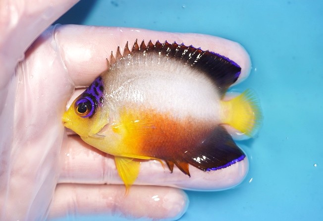 【ウィンターセール 10%OFF対象商品】 【海水魚・ヤッコ】【通販】【マーシャル島産】マルチカラーエンゼル(MLサイズ)(個体販売)(±7.5cm) No.16(生体)(海水魚)