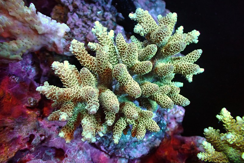 【サンゴまとめ買い割引き10%〜20%OFF対象商品】 【サンゴ】【通販】ブリードミドリイシsp. (美カラー)MLサイズ(個体販売)(±11cm)No.7(生体)(サンゴ)