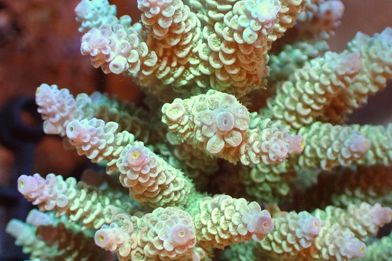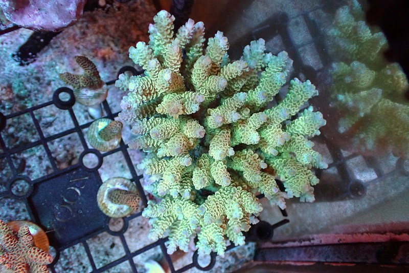 【サンゴまとめ買い割引き10%〜20%OFF対象商品】 【サンゴ】【通販】ブリードミドリイシsp. (美カラー)Lサイズ(個体販売)(±13cm)No.9(生体)(サンゴ)