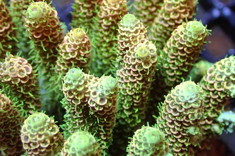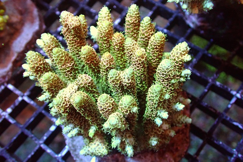 【サンゴまとめ買い割引き10%〜20%OFF対象商品】 【サンゴ】【通販】ブリードミドリイシsp. (美カラー)Mサイズ(個体販売)(±9cm)No.18(生体)(サンゴ)