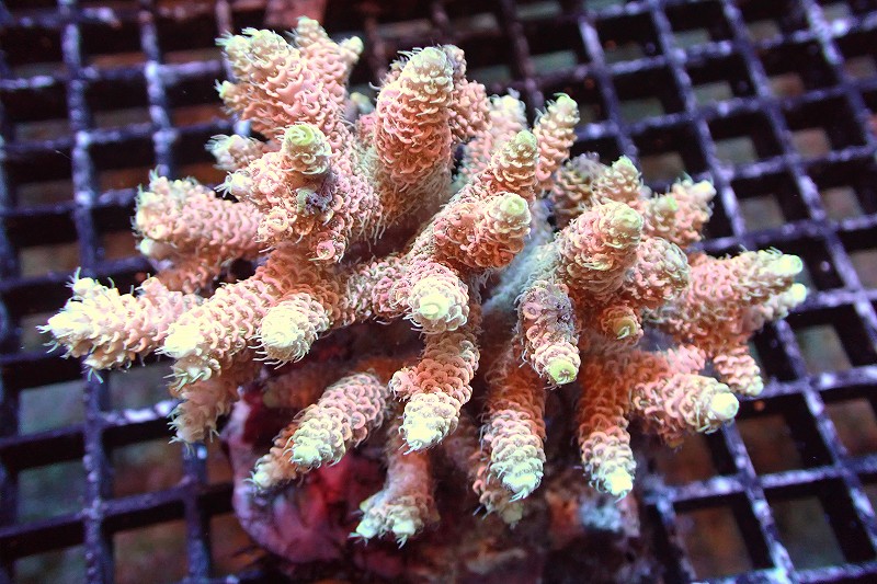 【サンゴまとめ買い割引き10%〜20%OFF対象商品】 【サンゴ】【通販】ブリードミドリイシsp. (美カラー)Mサイズ(個体販売)(±9cm)No.19(生体)(サンゴ)