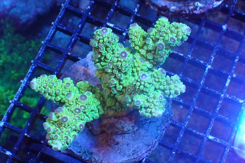 【サンゴまとめ買い割引き10%〜20%OFF対象商品】 【サンゴ】【通販】ブリードミドリイシsp. (美カラー)MLサイズ(個体販売)(±11cm)No.21(生体)(サンゴ)