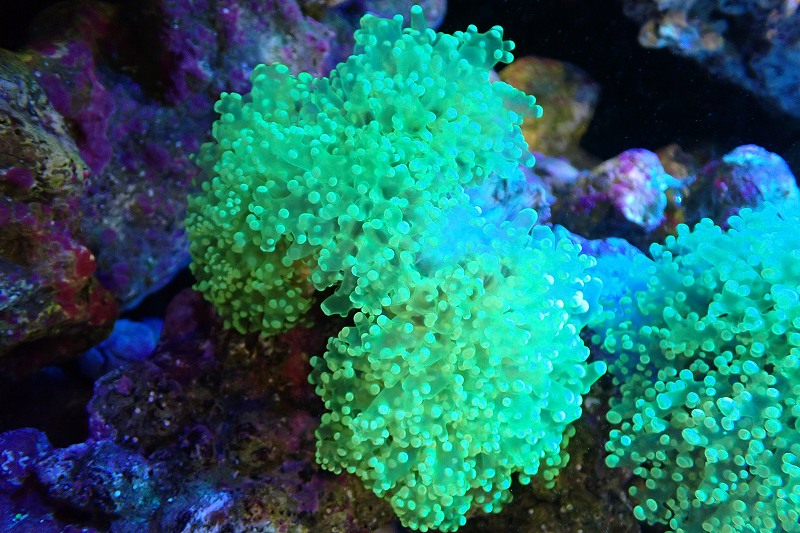 【サンゴ】【通販】ホンタコアシサンゴ(メタリックグリーン/MLサイズ)(個体販売)(±10-13cm)No.2(生体)(サンゴ)