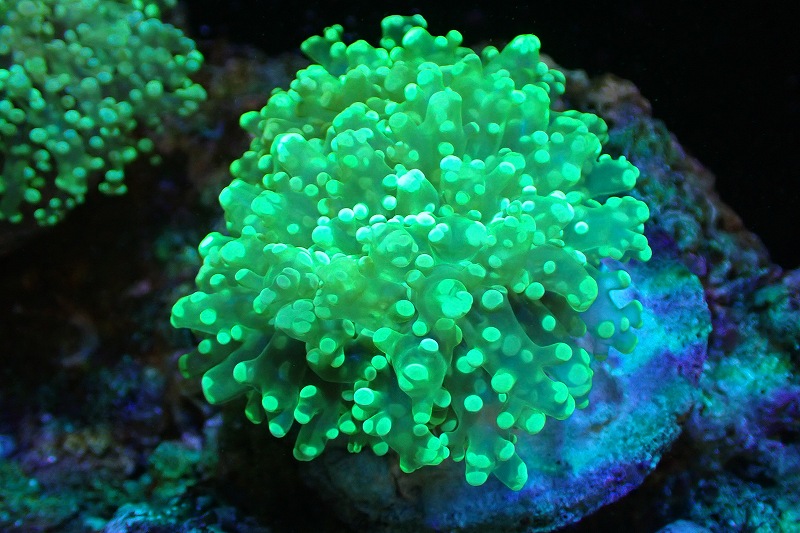 【サンゴ】【通販】ホンタコアシサンゴ(メタリックグリーン/Mサイズ)(個体販売)(±8-10cm)No.5(生体)(サンゴ)