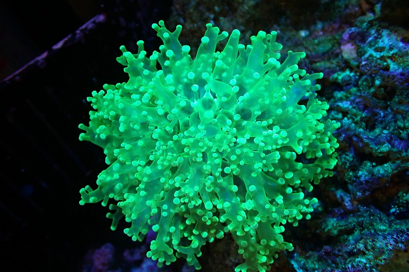 【サンゴ】【通販】ホンタコアシサンゴ(メタリックグリーン/Mサイズ)(個体販売)(±8-10cm)No.7(生体)(サンゴ)