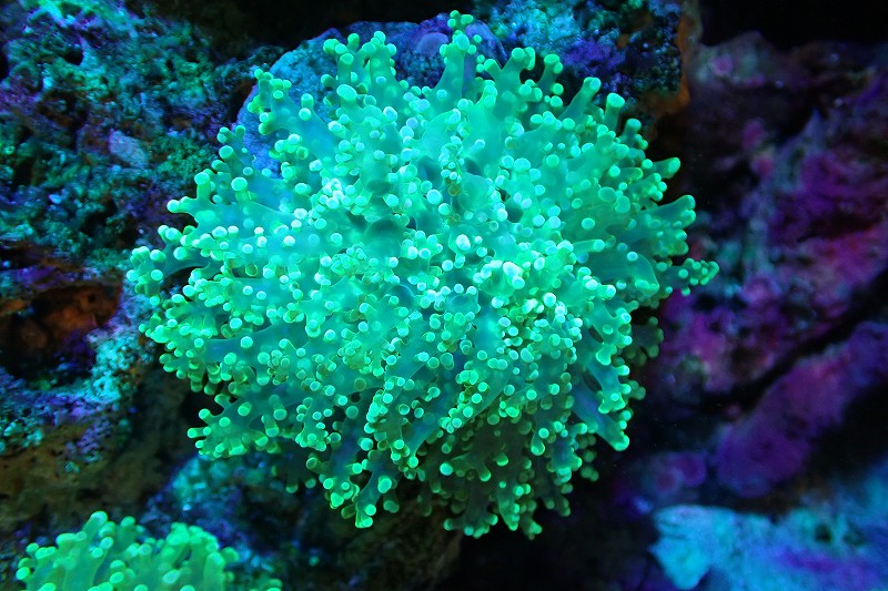 【サンゴ】【通販】ホンタコアシサンゴ(メタリックグリーン/Mサイズ)(個体販売)(±8-10cm)No.8(生体)(サンゴ)