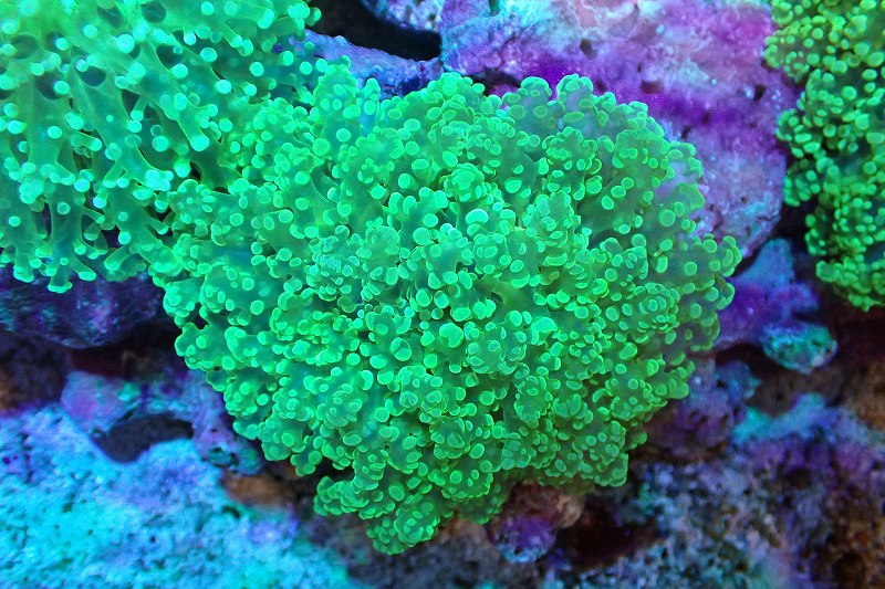 【サンゴ】【通販】ホンタコアシサンゴ(メタリックグリーン/Mサイズ)(個体販売)(±8-10cm)No.9(生体)(サンゴ)