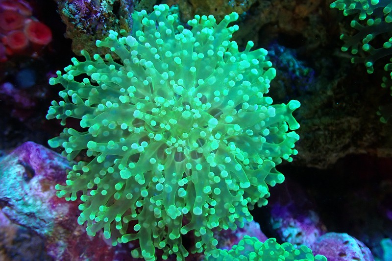 【サンゴ】【通販】ホンタコアシサンゴ(メタリックグリーン/Mサイズ)(個体販売)(±8-10cm)No.10(生体)(サンゴ)