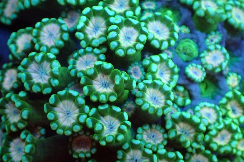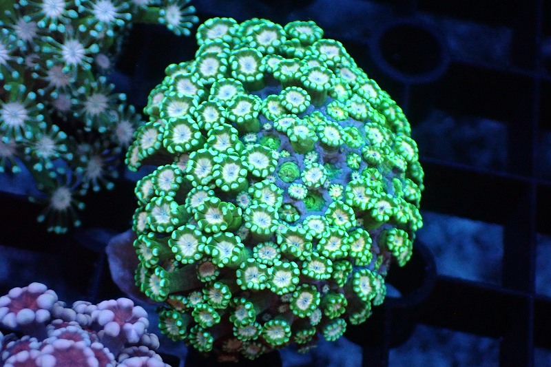 【サンゴ】【通販】アワサンゴ(メタリックグリーン/ピンクコア)(個体販売)(±4-5cm)No.2(生体)(サンゴ)