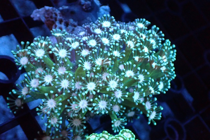 【サンゴ】【通販】アワサンゴ(メタリックグリーン/ピンクコア)(個体販売)(±6-7cm)No.3(生体)(サンゴ)
