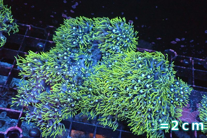 【サンゴ】【通販】スターポリプ(メタリックグリーン)Mサイズ(個体販売)No.2(生体)(サンゴ)