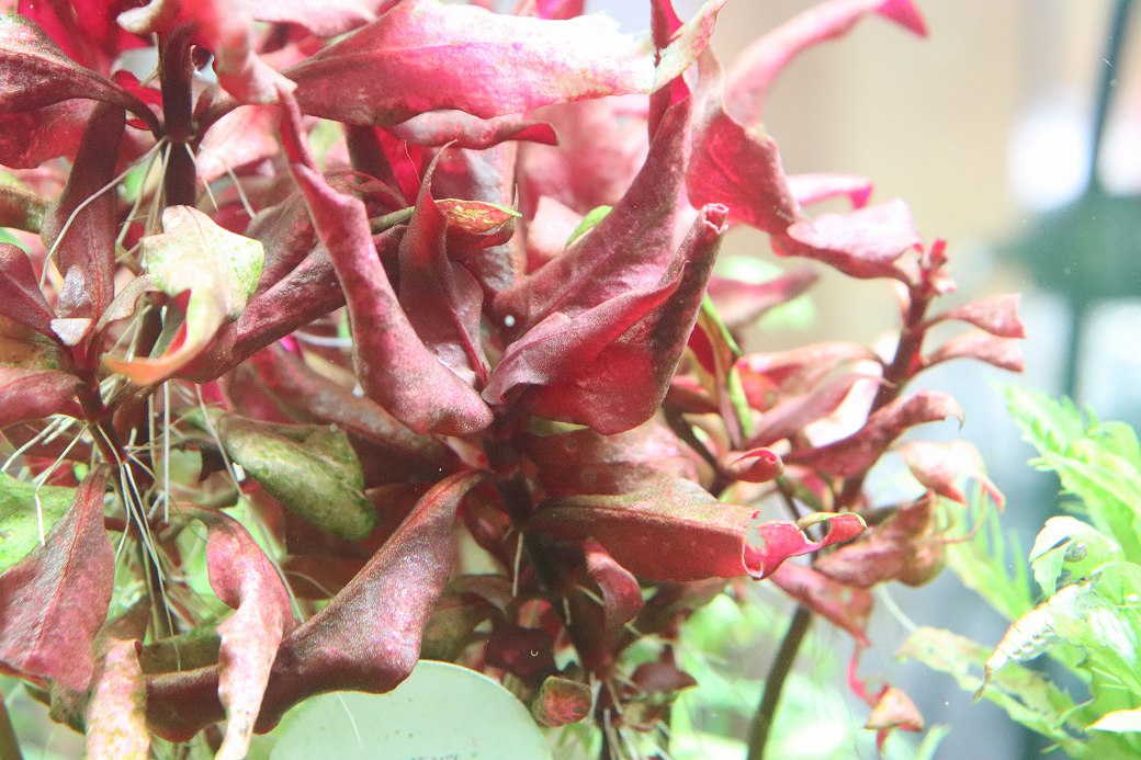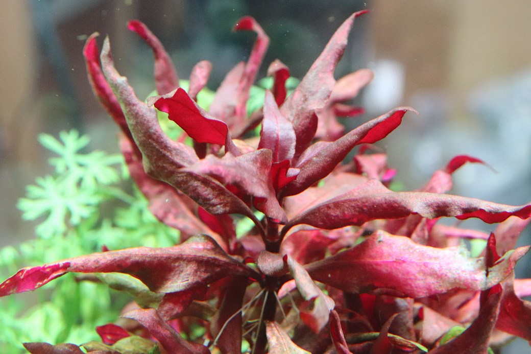 赤系水草といえばレインキーというくらい強烈な印象を与える赤さをしております。育成は簡単です。無農薬となりますので、エビにも安心してご使用していただけます。
