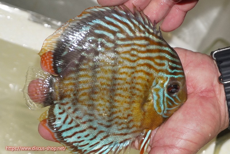 グリーンディスカスの中でも最もバリエーションが豊富でラージスポットタイプ、スポットラインタイプをはじめ、ロイヤルラインタイプなどの極上個体。またベースカラーの黄色、ホリゾンタルラインの青み、スポットの赤と最もカラフルな種となります。仕上がれば改良品種顔負けのど派手なパターンを持つ魅力的な産地の個体となります。