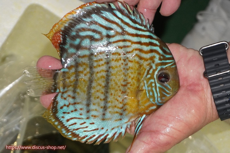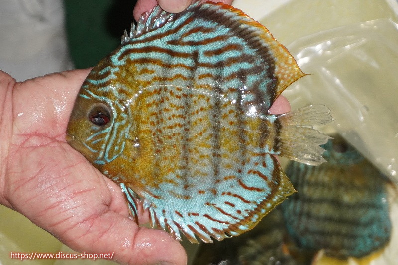 グリーンディスカスの中でも最もバリエーションが豊富でラージスポットタイプ、スポットラインタイプをはじめ、ロイヤルラインタイプなどの極上個体。またベースカラーの黄色、ホリゾンタルラインの青み、スポットの赤と最もカラフルな種となります。仕上がれば改良品種顔負けのど派手なパターンを持つ魅力的な産地の個体となります。