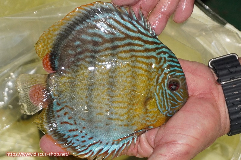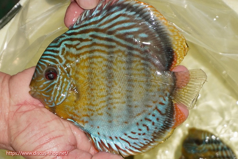 グリーンディスカスの中でも最もバリエーションが豊富でラージスポットタイプ、スポットラインタイプをはじめ、ロイヤルラインタイプなどの極上個体。またベースカラーの黄色、ホリゾンタルラインの青み、スポットの赤と最もカラフルな種となります。仕上がれば改良品種顔負けのど派手なパターンを持つ魅力的な産地の個体となります。
