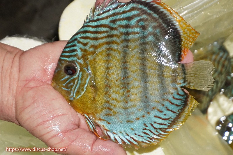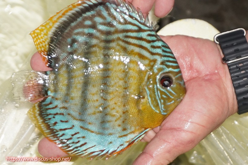 グリーンディスカスの中でも最もバリエーションが豊富でラージスポットタイプ、スポットラインタイプをはじめ、ロイヤルラインタイプなどの極上個体。またベースカラーの黄色、ホリゾンタルラインの青み、スポットの赤と最もカラフルな種となります。仕上がれば改良品種顔負けのど派手なパターンを持つ魅力的な産地の個体となります。