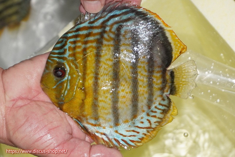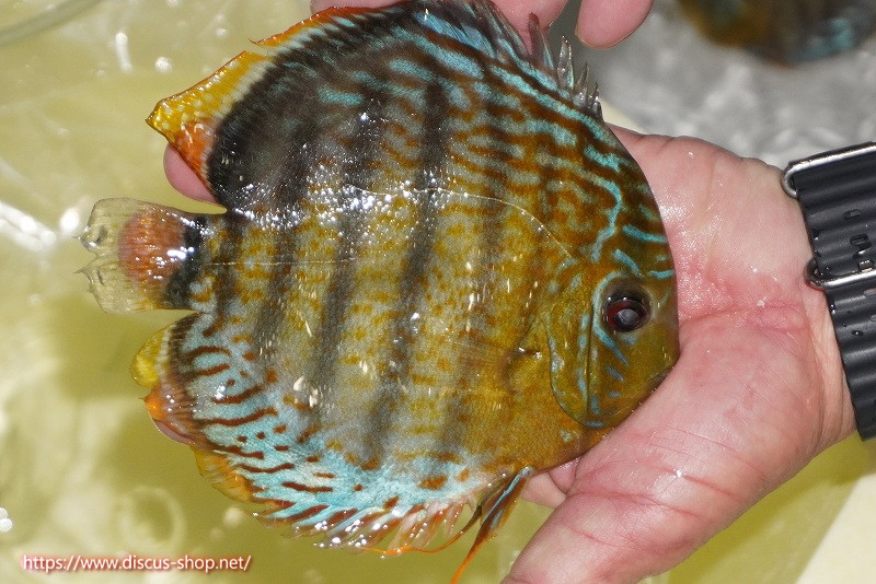 グリーンディスカスの中でも最もバリエーションが豊富でラージスポットタイプ、スポットラインタイプをはじめ、ロイヤルラインタイプなどの極上個体。またベースカラーの黄色、ホリゾンタルラインの青み、スポットの赤と最もカラフルな種となります。仕上がれば改良品種顔負けのど派手なパターンを持つ魅力的な産地の個体となります。