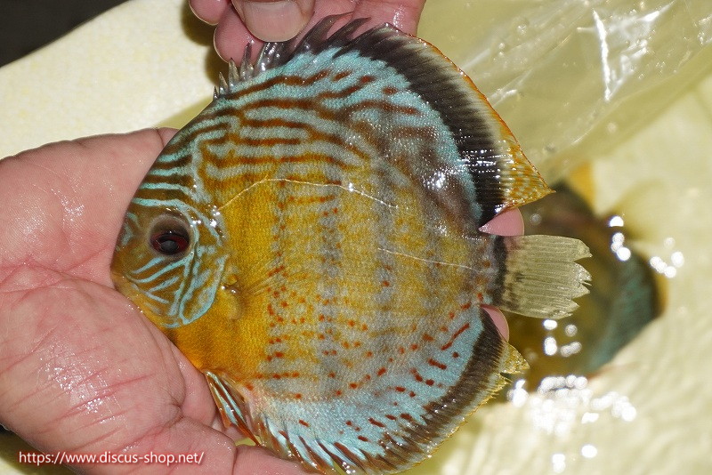 グリーンディスカスの中でも最もバリエーションが豊富でラージスポットタイプ、スポットラインタイプをはじめ、ロイヤルラインタイプなどの極上個体。またベースカラーの黄色、ホリゾンタルラインの青み、スポットの赤と最もカラフルな種となります。仕上がれば改良品種顔負けのど派手なパターンを持つ魅力的な産地の個体となります。