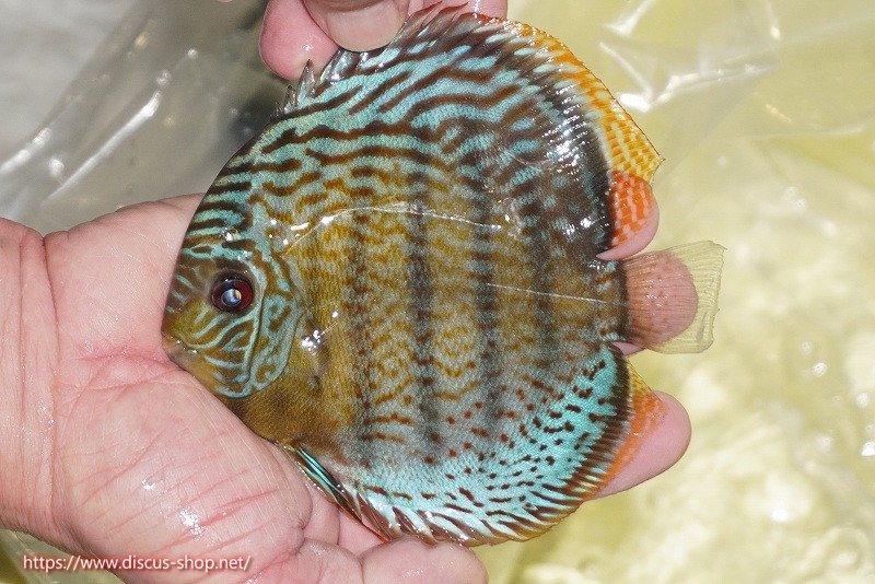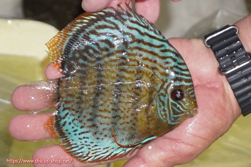 グリーンディスカスの中でも最もバリエーションが豊富でラージスポットタイプ、スポットラインタイプをはじめ、ロイヤルラインタイプなどの極上個体。またベースカラーの黄色、ホリゾンタルラインの青み、スポットの赤と最もカラフルな種となります。仕上がれば改良品種顔負けのど派手なパターンを持つ魅力的な産地の個体となります。
