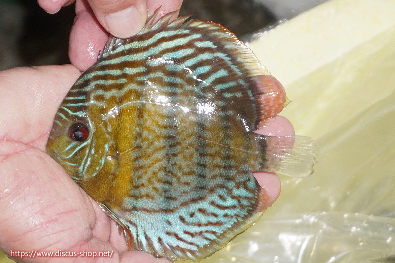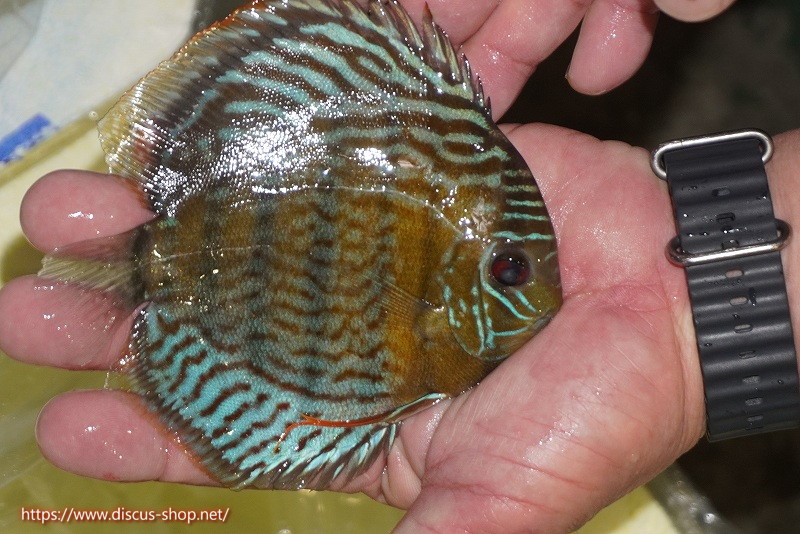 グリーンディスカスの中でも最もバリエーションが豊富でラージスポットタイプ、スポットラインタイプをはじめ、ロイヤルラインタイプなどの極上個体。またベースカラーの黄色、ホリゾンタルラインの青み、スポットの赤と最もカラフルな種となります。仕上がれば改良品種顔負けのど派手なパターンを持つ魅力的な産地の個体となります。