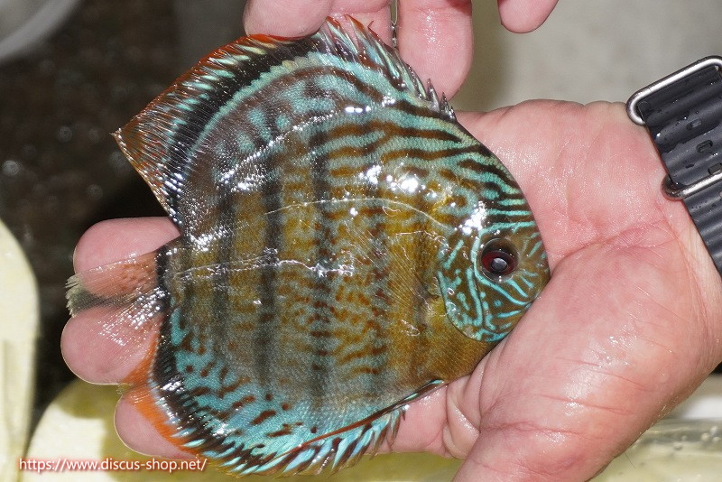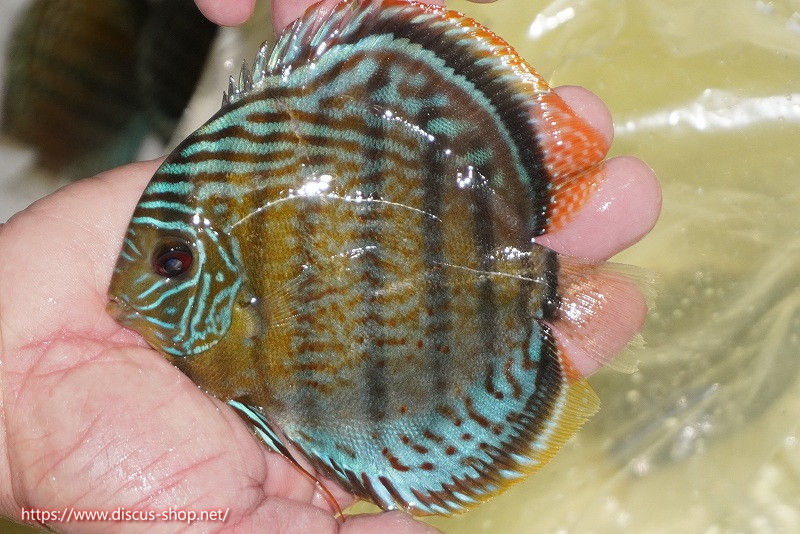 グリーンディスカスの中でも最もバリエーションが豊富でラージスポットタイプ、スポットラインタイプをはじめ、ロイヤルラインタイプなどの極上個体。またベースカラーの黄色、ホリゾンタルラインの青み、スポットの赤と最もカラフルな種となります。仕上がれば改良品種顔負けのど派手なパターンを持つ魅力的な産地の個体となります。