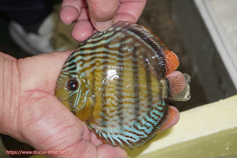 グリーンディスカスの中でも最もバリエーションが豊富でラージスポットタイプ、スポットラインタイプをはじめ、ロイヤルラインタイプなどの極上個体。またベースカラーの黄色、ホリゾンタルラインの青み、スポットの赤と最もカラフルな種となります。仕上がれば改良品種顔負けのど派手なパターンを持つ魅力的な産地の個体となります。