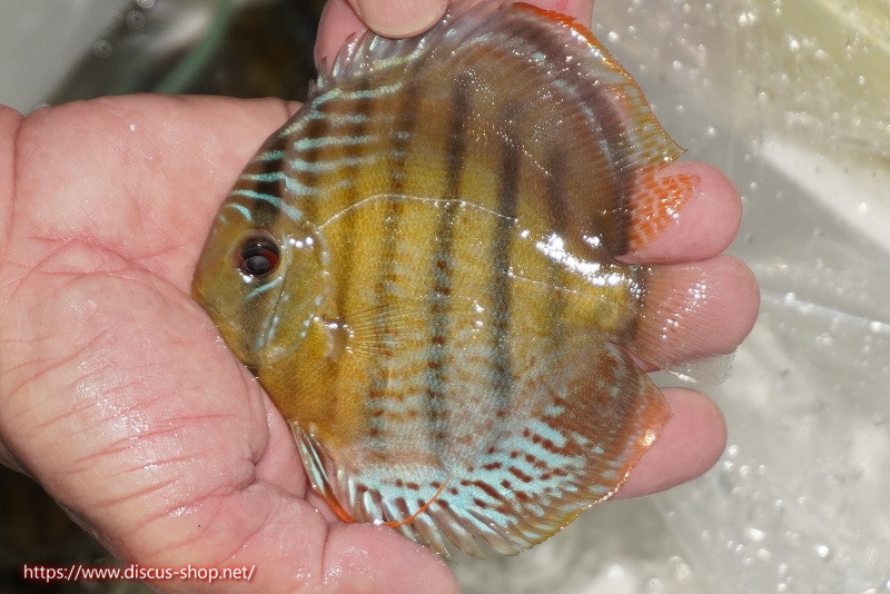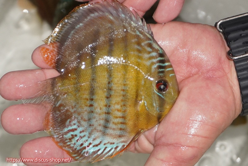 グリーンディスカスの中でも最もバリエーションが豊富でラージスポットタイプ、スポットラインタイプをはじめ、ロイヤルラインタイプなどの極上個体。またベースカラーの黄色、ホリゾンタルラインの青み、スポットの赤と最もカラフルな種となります。仕上がれば改良品種顔負けのど派手なパターンを持つ魅力的な産地の個体となります。