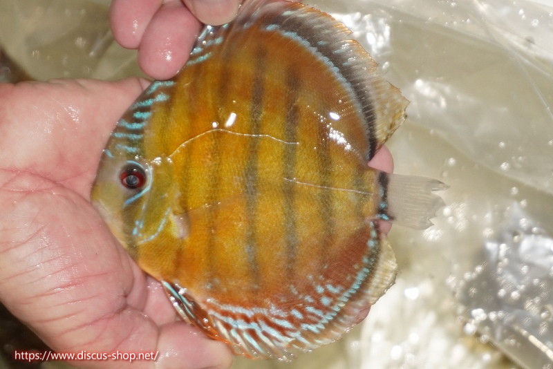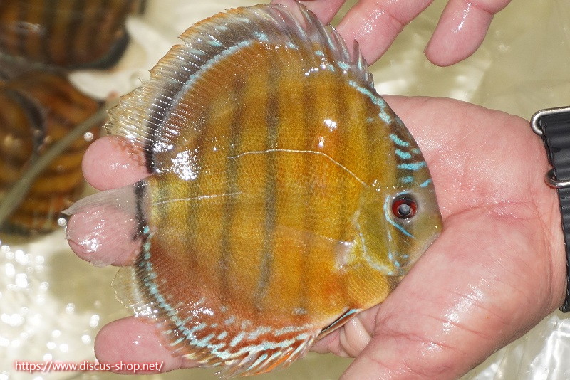 美しいラウンドフォルム、17センチを優に超える体躯でブルーディスカスの常識を覆した産地。下流域にはラインパターン、ソリッドが混生し、上流域には目を見張る様な青を発色するヘッケルが生息する。