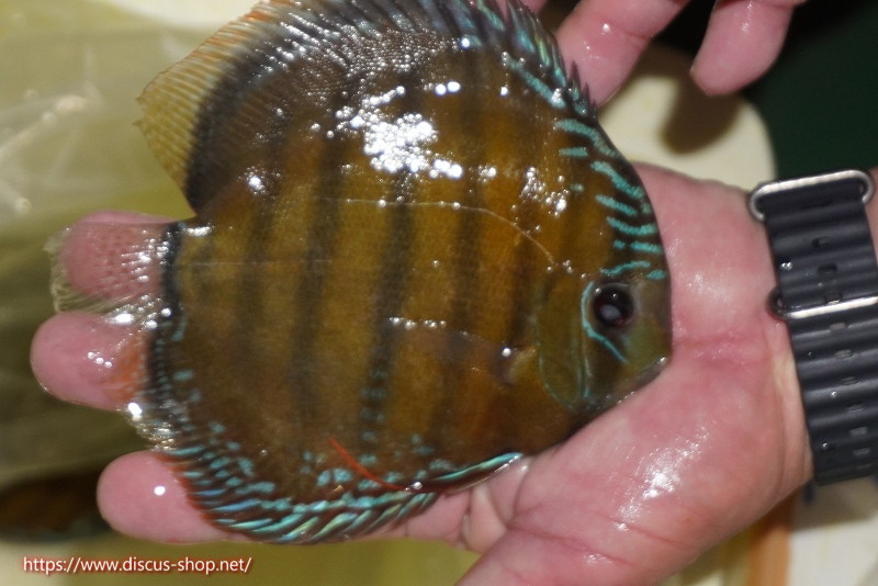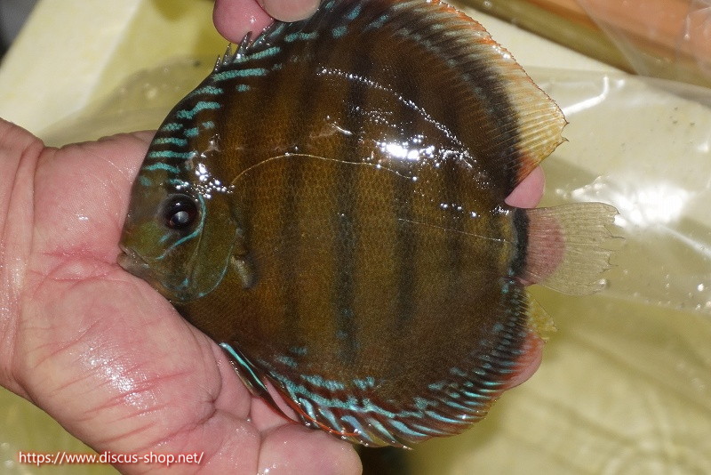 美しいラウンドフォルム、17センチを優に超える体躯でブルーディスカスの常識を覆した産地。下流域にはラインパターン、ソリッドが混生し、上流域には目を見張る様な青を発色するヘッケルが生息する。