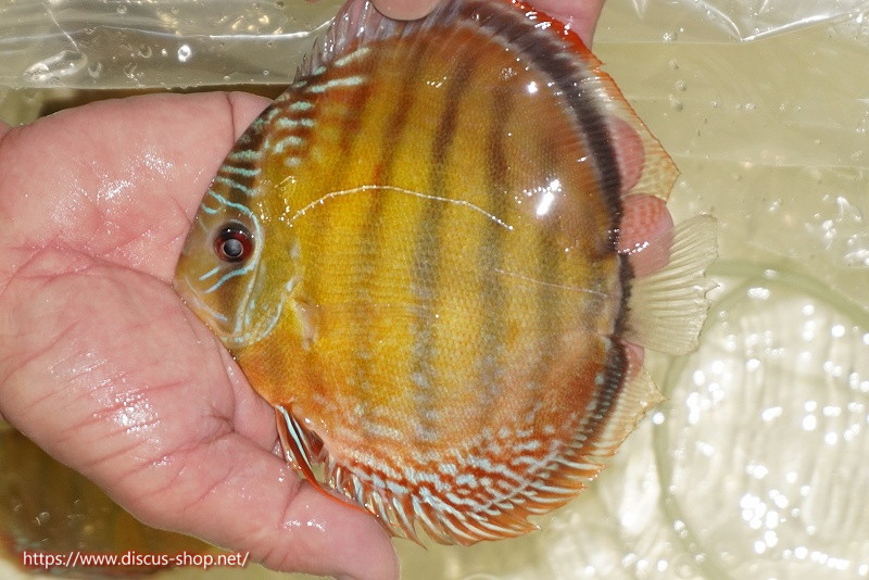 美しいラウンドフォルム、17センチを優に超える体躯でブルーディスカスの常識を覆した産地。下流域にはラインパターン、ソリッドが混生し、上流域には目を見張る様な青を発色するヘッケルが生息する。