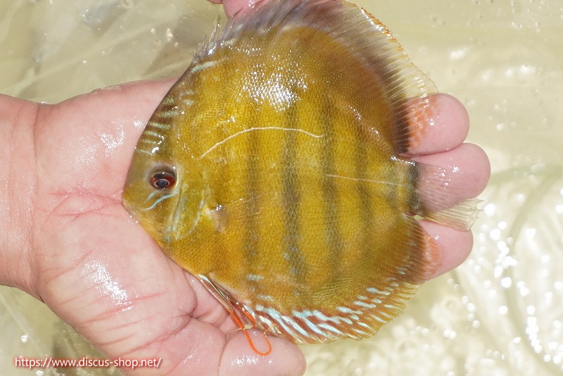 美しいラウンドフォルム、17センチを優に超える体躯でブルーディスカスの常識を覆した産地。下流域にはラインパターン、ソリッドが混生し、上流域には目を見張る様な青を発色するヘッケルが生息する。