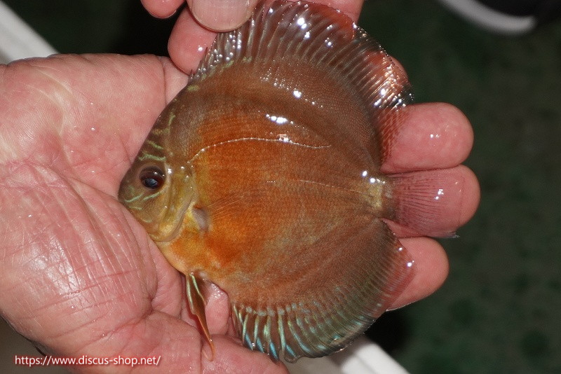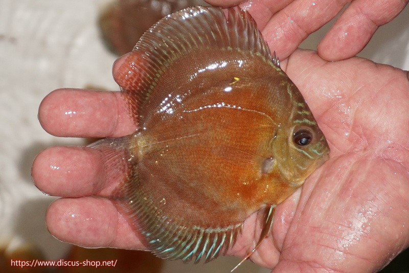 紅月の種親のウルトラグレード個体と同グレードの朱月を交配した新シリーズの生後半年個体。名のごとく全身の紅色の深い発色と抜群のブルーアーチ、どれをとっても一級品以上のポテンシャルを持っております。成長も早く健全で強い個体ですのであと半年飼い込めば恐ろしいポテンシャルを発揮するでしょう。B-HOUSE朱月、紅月とは、誰もが知る唯一無二のカリスマ、広島B-HOUSE倉津氏が20年以上の歳月をかけて作出した究極かつ唯一無二の完全オリジナルメイドインジャパンディスカス。単純にワイルドレッドディスカスのみを交配したのではなく全てのワイルドディスカスからの交配で作出されており、その赤の深さ、ブルーのラインや発色は意図して創られた究極のディスカスです。氏が話されていたブリーダーではなくデザイナー、アーティストという感覚で鱗の輝きや色質を考え作られたことはこのディスカスを見れば十分に納得いただけると思います。それほどに奥深く、長年交配され完成されたこのディスカスからは他にはないオーラを感じます。早々世の中に出回ることが無い大変貴重な個体です。