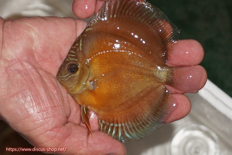紅月の種親のウルトラグレード個体と同グレードの朱月を交配した新シリーズの生後半年個体。名のごとく全身の紅色の深い発色と抜群のブルーアーチ、どれをとっても一級品以上のポテンシャルを持っております。成長も早く健全で強い個体ですのであと半年飼い込めば恐ろしいポテンシャルを発揮するでしょう。B-HOUSE朱月、紅月とは、誰もが知る唯一無二のカリスマ、広島B-HOUSE倉津氏が20年以上の歳月をかけて作出した究極かつ唯一無二の完全オリジナルメイドインジャパンディスカス。単純にワイルドレッドディスカスのみを交配したのではなく全てのワイルドディスカスからの交配で作出されており、その赤の深さ、ブルーのラインや発色は意図して創られた究極のディスカスです。氏が話されていたブリーダーではなくデザイナー、アーティストという感覚で鱗の輝きや色質を考え作られたことはこのディスカスを見れば十分に納得いただけると思います。それほどに奥深く、長年交配され完成されたこのディスカスからは他にはないオーラを感じます。早々世の中に出回ることが無い大変貴重な個体です。