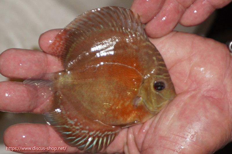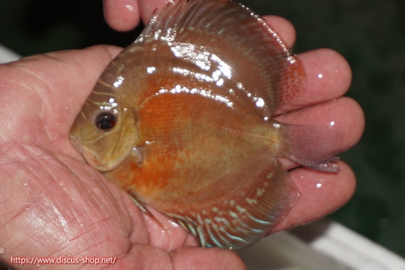紅月の種親のウルトラグレード個体と同グレードの朱月を交配した新シリーズの生後半年個体。名のごとく全身の紅色の深い発色と抜群のブルーアーチ、どれをとっても一級品以上のポテンシャルを持っております。成長も早く健全で強い個体ですのであと半年飼い込めば恐ろしいポテンシャルを発揮するでしょう。B-HOUSE朱月、紅月とは、誰もが知る唯一無二のカリスマ、広島B-HOUSE倉津氏が20年以上の歳月をかけて作出した究極かつ唯一無二の完全オリジナルメイドインジャパンディスカス。単純にワイルドレッドディスカスのみを交配したのではなく全てのワイルドディスカスからの交配で作出されており、その赤の深さ、ブルーのラインや発色は意図して創られた究極のディスカスです。氏が話されていたブリーダーではなくデザイナー、アーティストという感覚で鱗の輝きや色質を考え作られたことはこのディスカスを見れば十分に納得いただけると思います。それほどに奥深く、長年交配され完成されたこのディスカスからは他にはないオーラを感じます。早々世の中に出回ることが無い大変貴重な個体です。