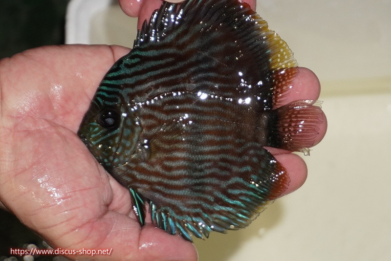 ネグロ産のヘッケルディスカス。ワイルドディスカスらしからぬ際立った青みを持ちベースカラーのえんじ色と相まって非常に美しい発色を見せます。名のごとくフェイス部分の青みは他の産地のヘッケルディスカスとは一味違った表現を持ちます。