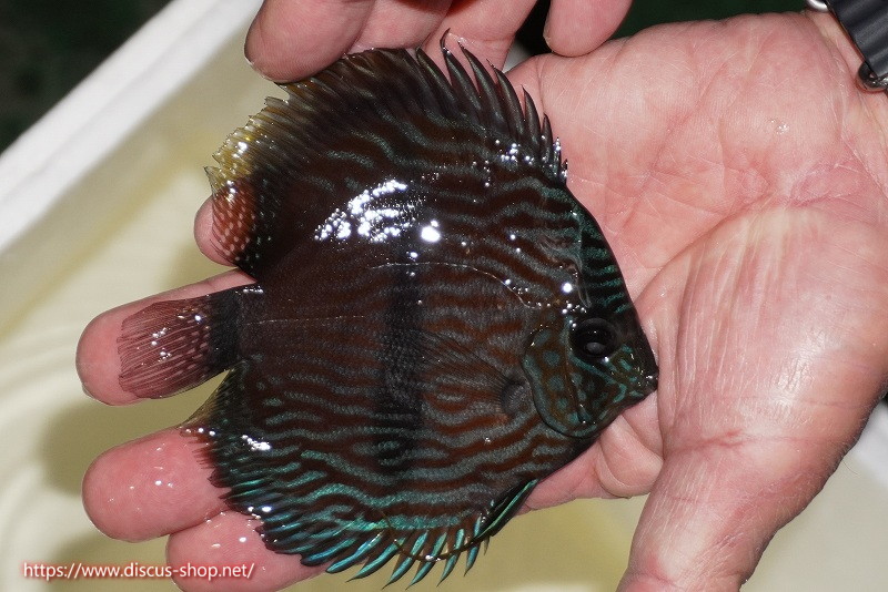 ネグロ産のヘッケルディスカス。ワイルドディスカスらしからぬ際立った青みを持ちベースカラーのえんじ色と相まって非常に美しい発色を見せます。名のごとくフェイス部分の青みは他の産地のヘッケルディスカスとは一味違った表現を持ちます。