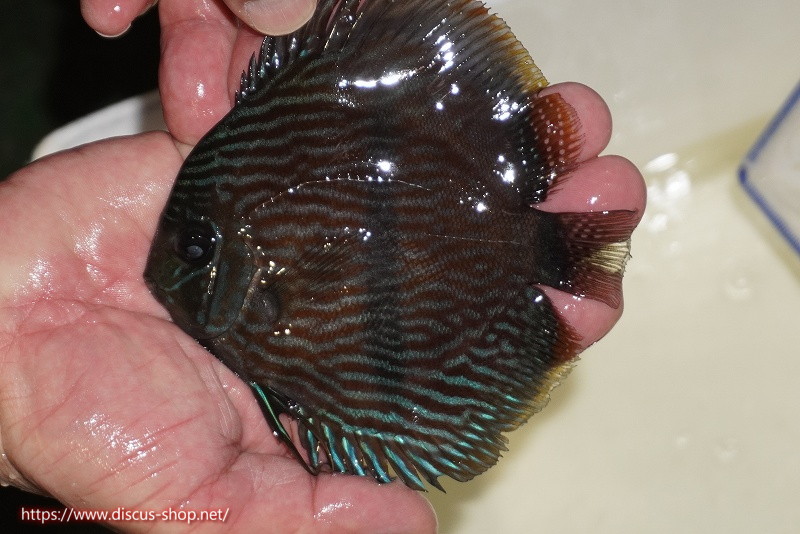 ネグロ産のヘッケルディスカス。ワイルドディスカスらしからぬ際立った青みを持ちベースカラーのえんじ色と相まって非常に美しい発色を見せます。名のごとくフェイス部分の青みは他の産地のヘッケルディスカスとは一味違った表現を持ちます。