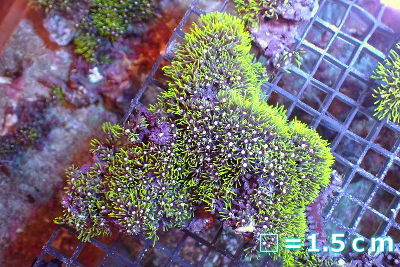 【サンゴ】【通販】スターポリプ(メタリックグリーン)Mサイズ(個体販売)No.7(生体)(サンゴ)