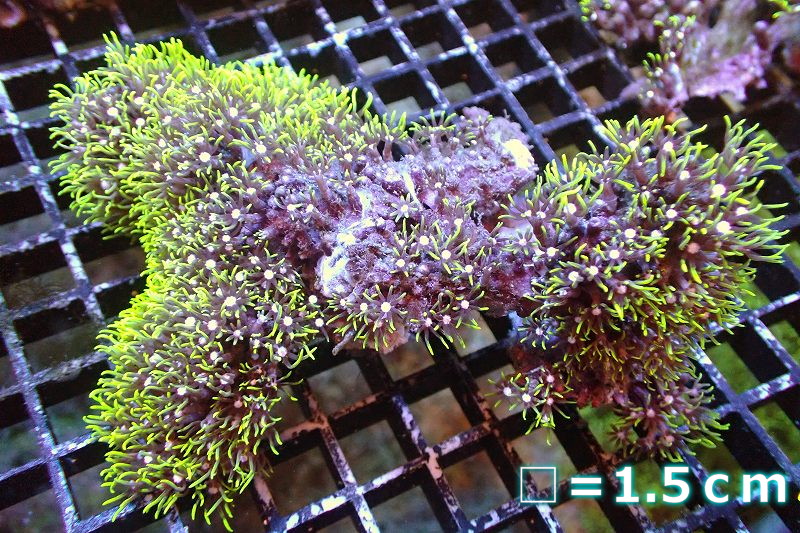 【サンゴ】【通販】スターポリプ(メタリックグリーン)Mサイズ(個体販売)No.15(生体)(サンゴ)